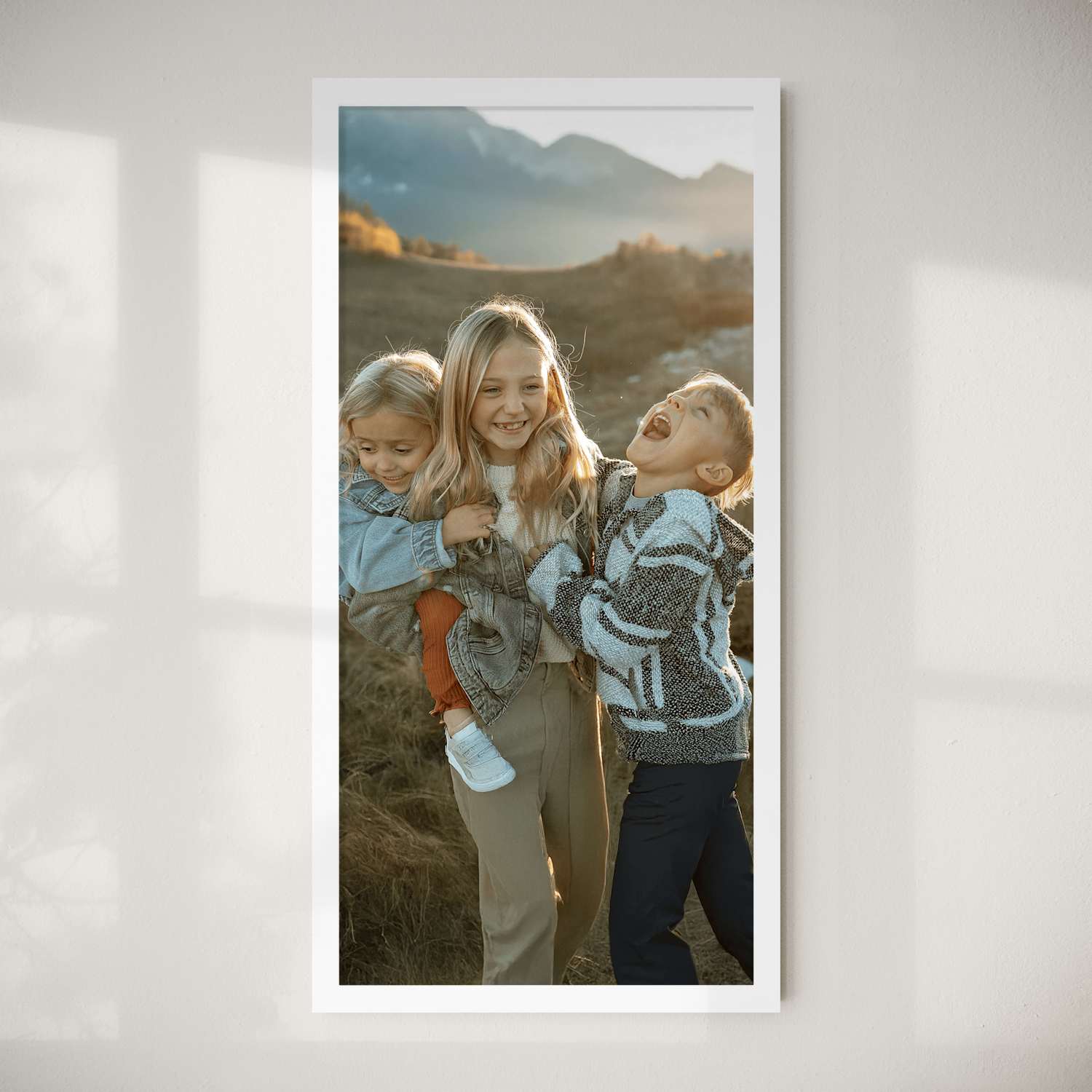 Die Formate starten bei 21x21 cm und gehen bis 69x91 cm. Unsere einzigartigen Hauptbilder sind 56x112 cm groß. Erhältlich in verschiedenen Materialien und Rahmenfarben, einschließlich rahmenloser Optionen und Leinwänden.