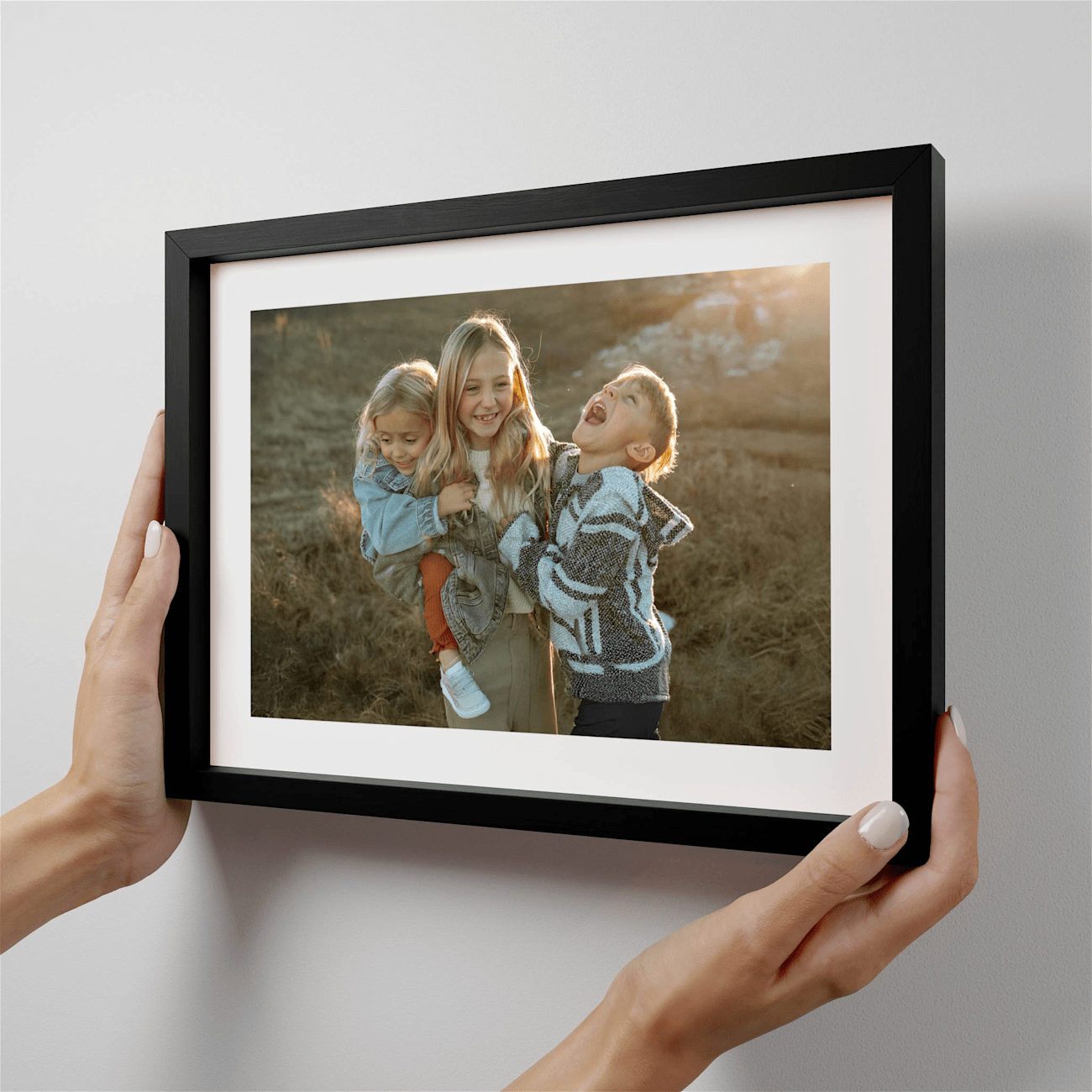 Die Formate starten bei 21x21 cm und gehen bis 69x91 cm. Unsere einzigartigen Hauptbilder sind 56x112 cm groß. Erhältlich in verschiedenen Materialien und Rahmenfarben, einschließlich rahmenloser Optionen und Leinwänden.