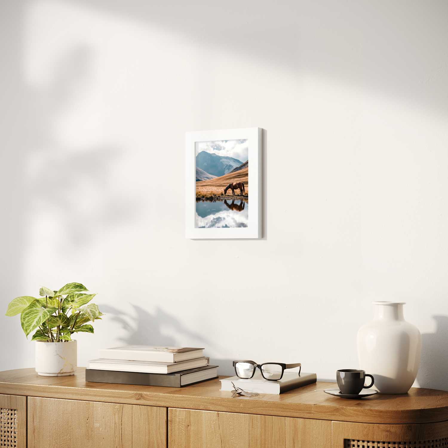 Sizes range from 21x28 cm to 56x112 cm. Available in various materials and frame colors, including frameless and canvas options