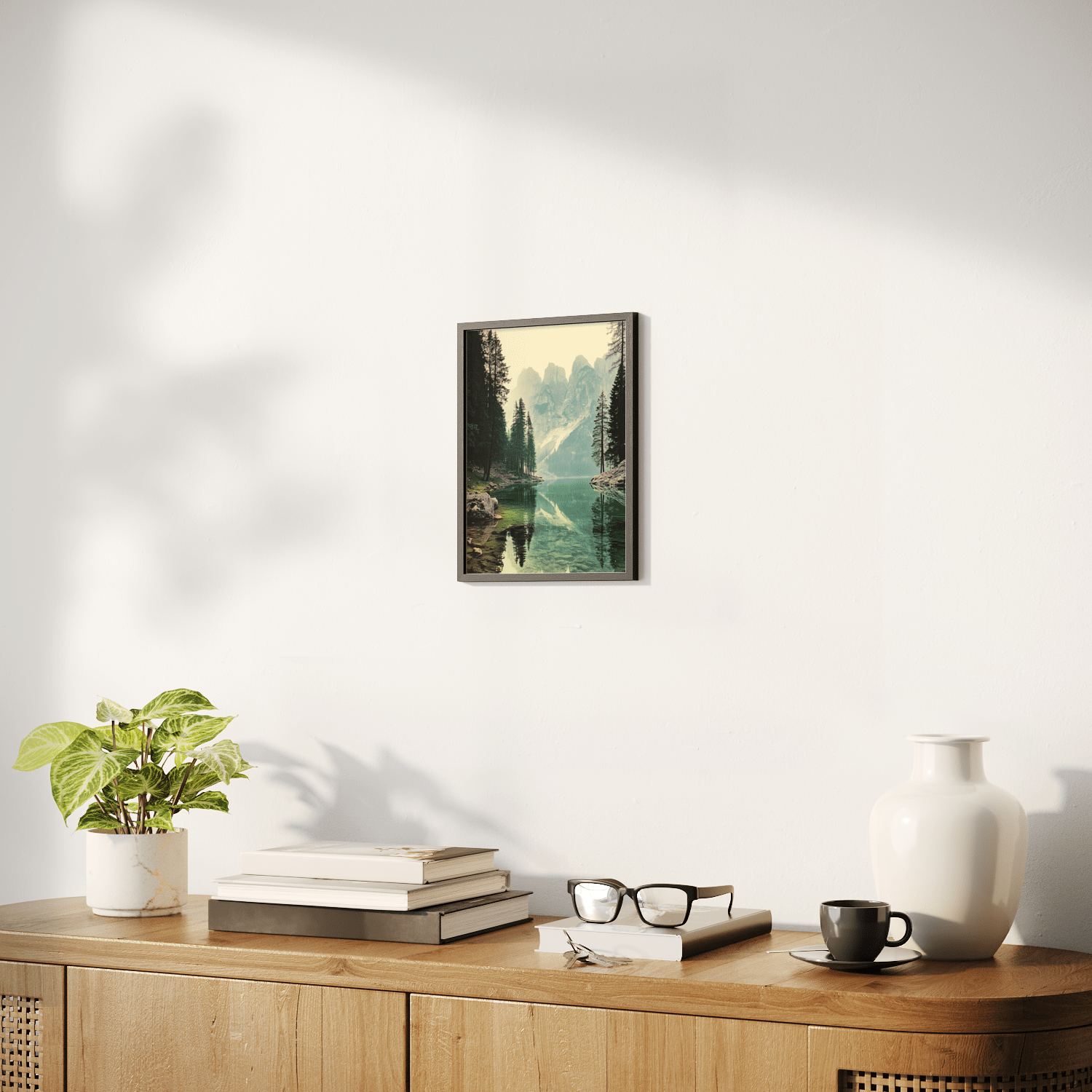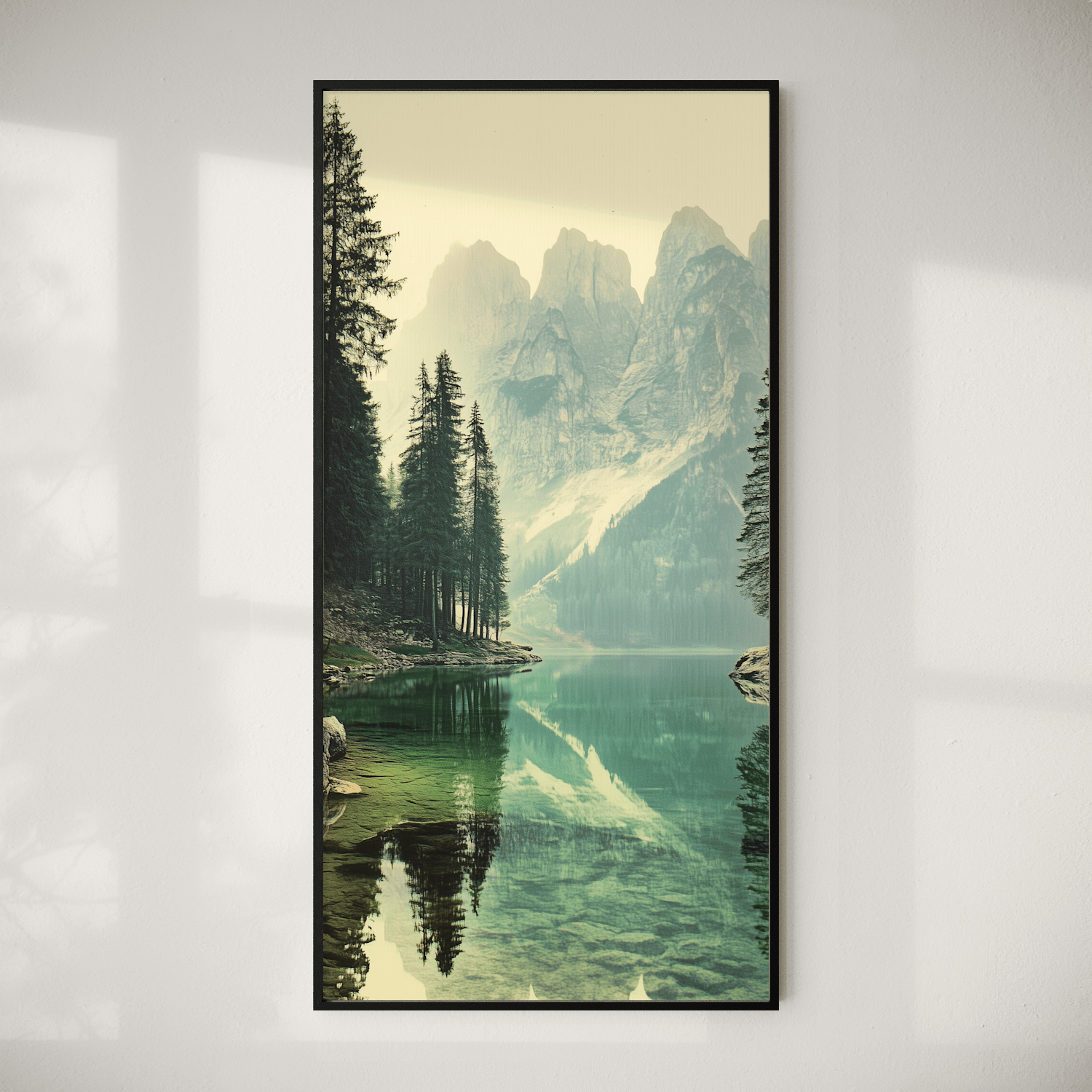 Sizes range from 21x28 cm to 56x112 cm. Available in various materials and frame colors, including frameless and canvas options