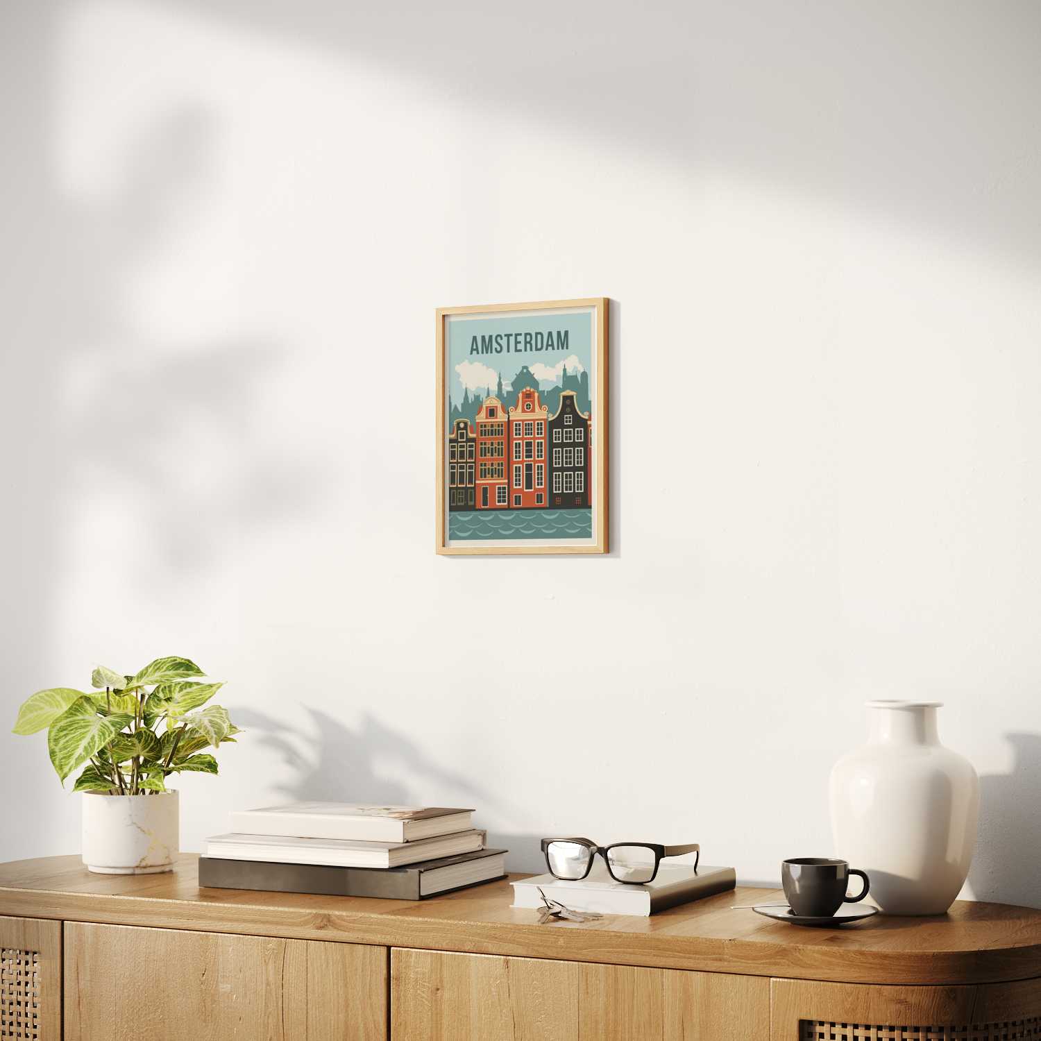 Sizes range from 21x28 cm to 56x112 cm. Available in various materials and frame colors, including frameless and canvas options