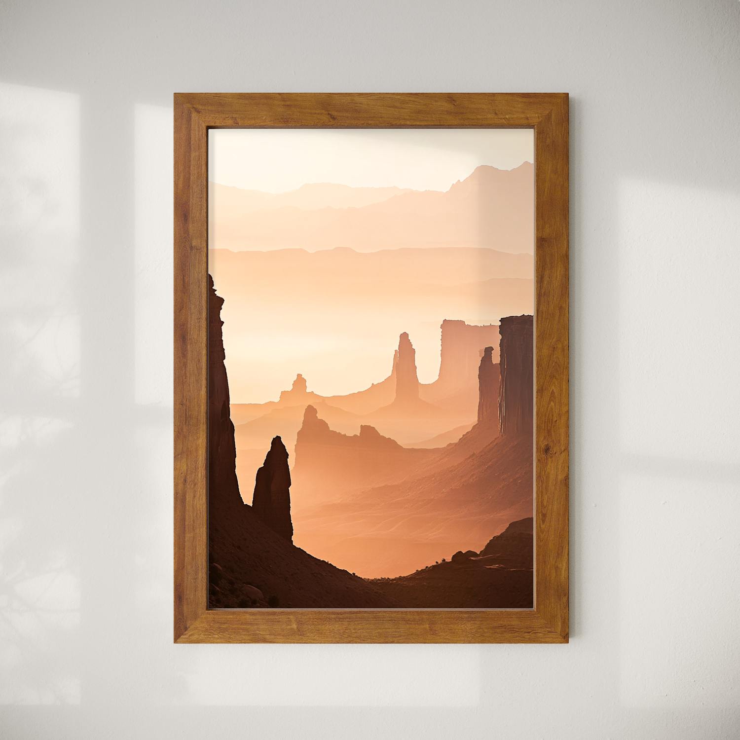 Sizes range from 21x28 cm to 56x112 cm. Available in various materials and frame colors, including frameless and canvas options
