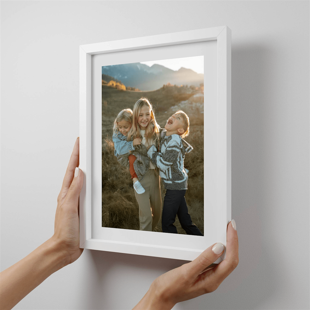 Printed framed pictures that stick to any wall, leave no damage, and can be moved around.