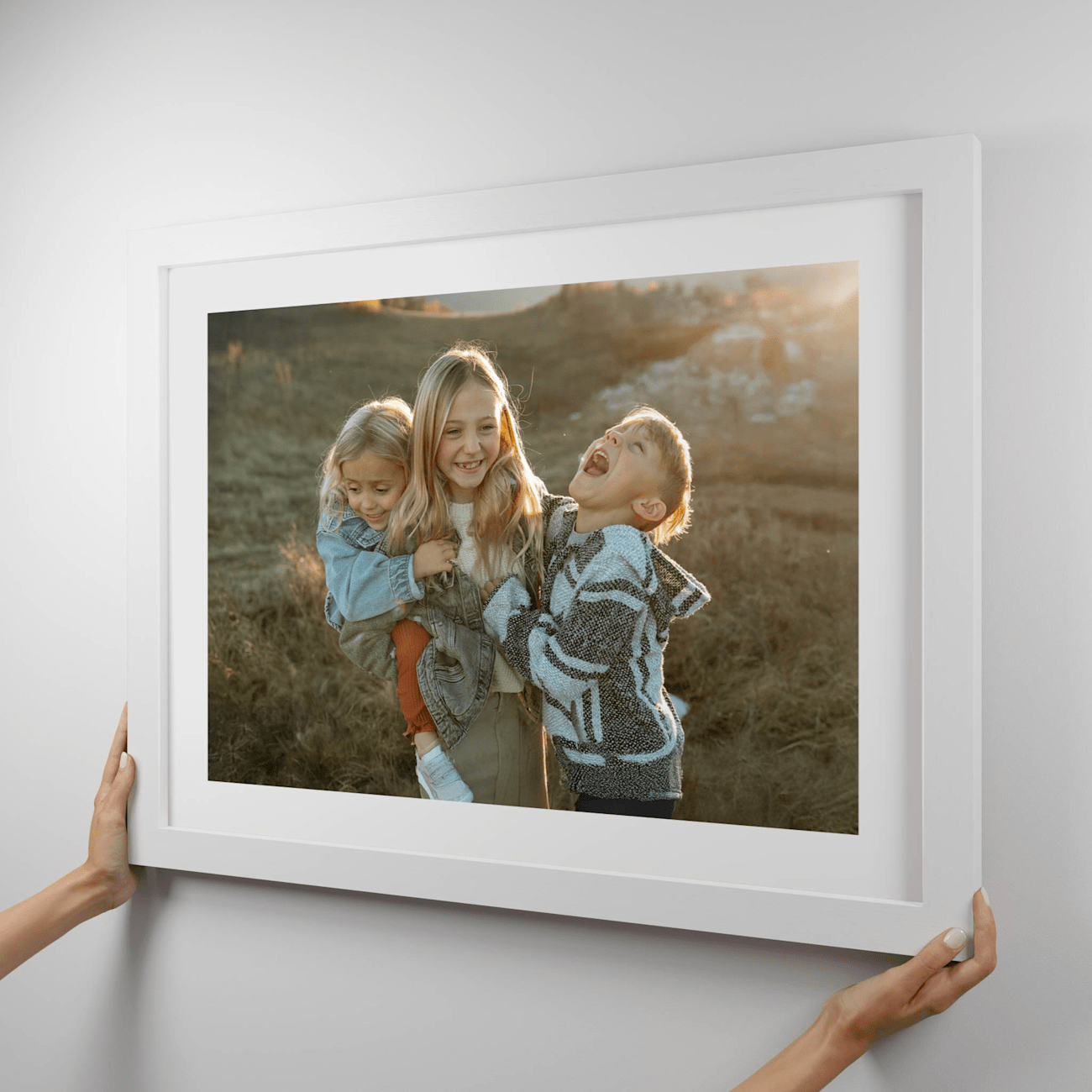 Printed framed pictures that stick to any wall, leave no damage, and can be moved around.