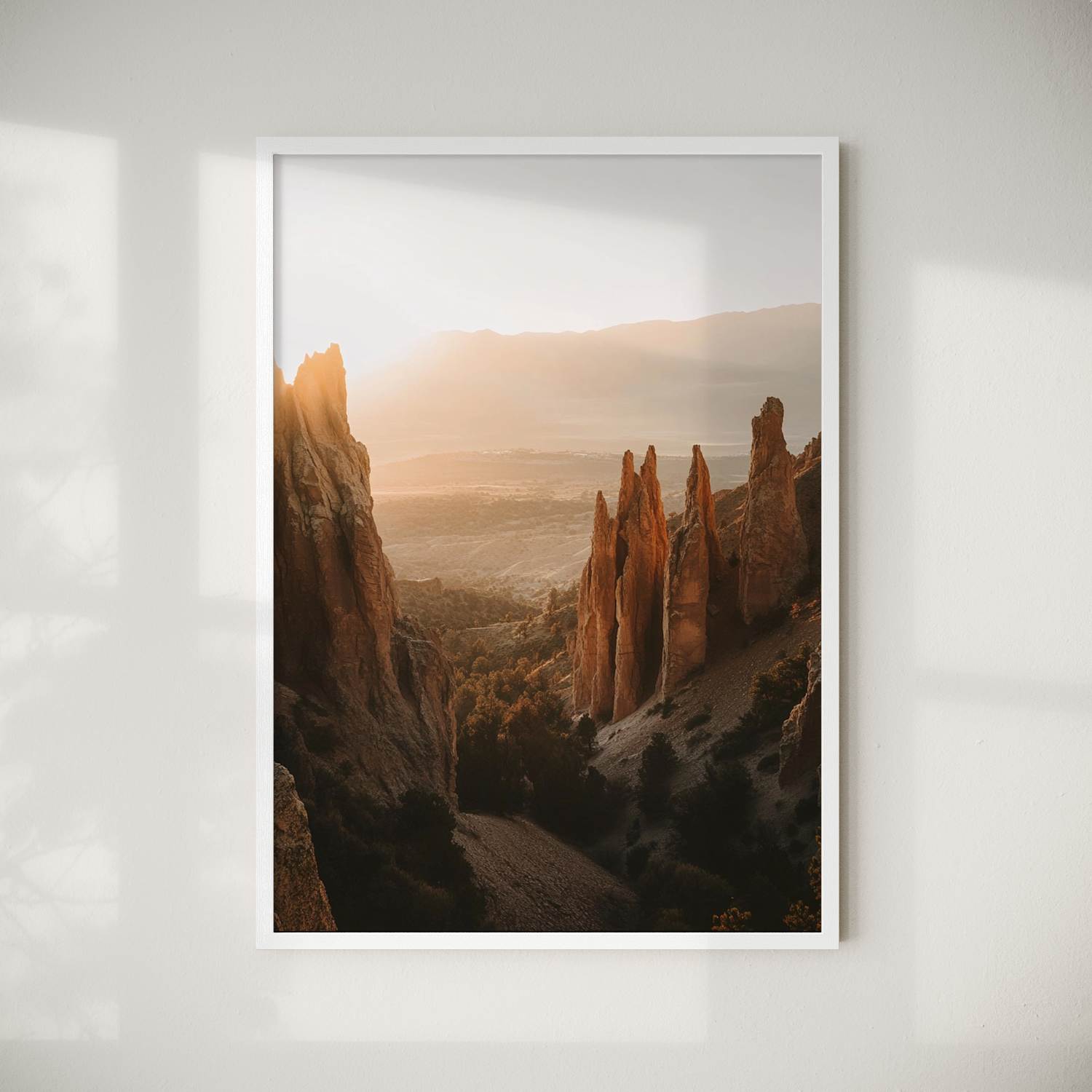 Sizes range from 21x28 cm to 56x112 cm. Available in various materials and frame colors, including frameless and canvas options