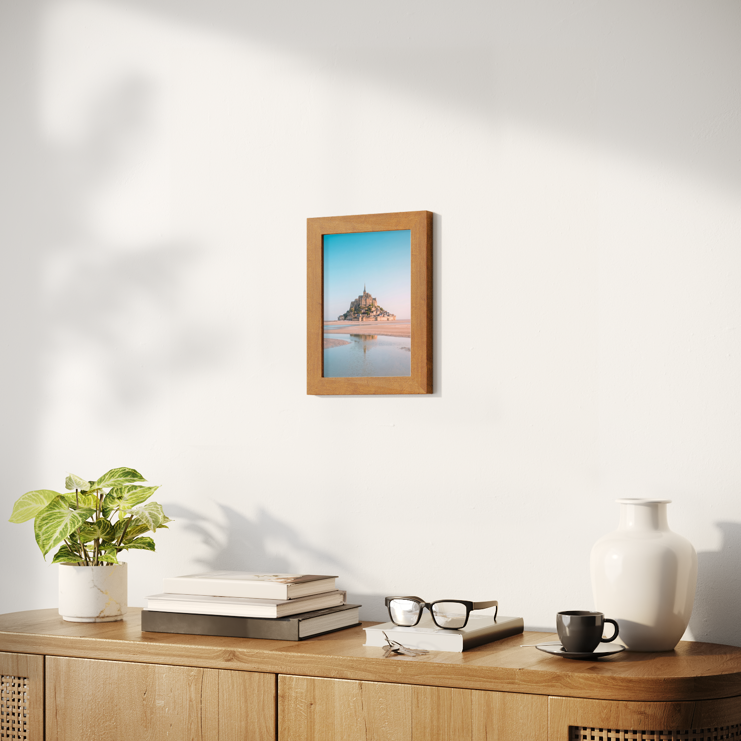 Sizes range from 21x28 cm to 56x112 cm. Available in various materials and frame colors, including frameless and canvas options