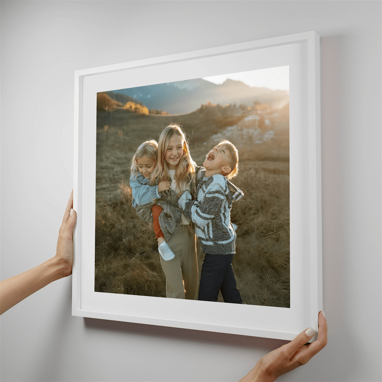 Printed framed pictures that stick to any wall, leave no damage, and can be moved around.