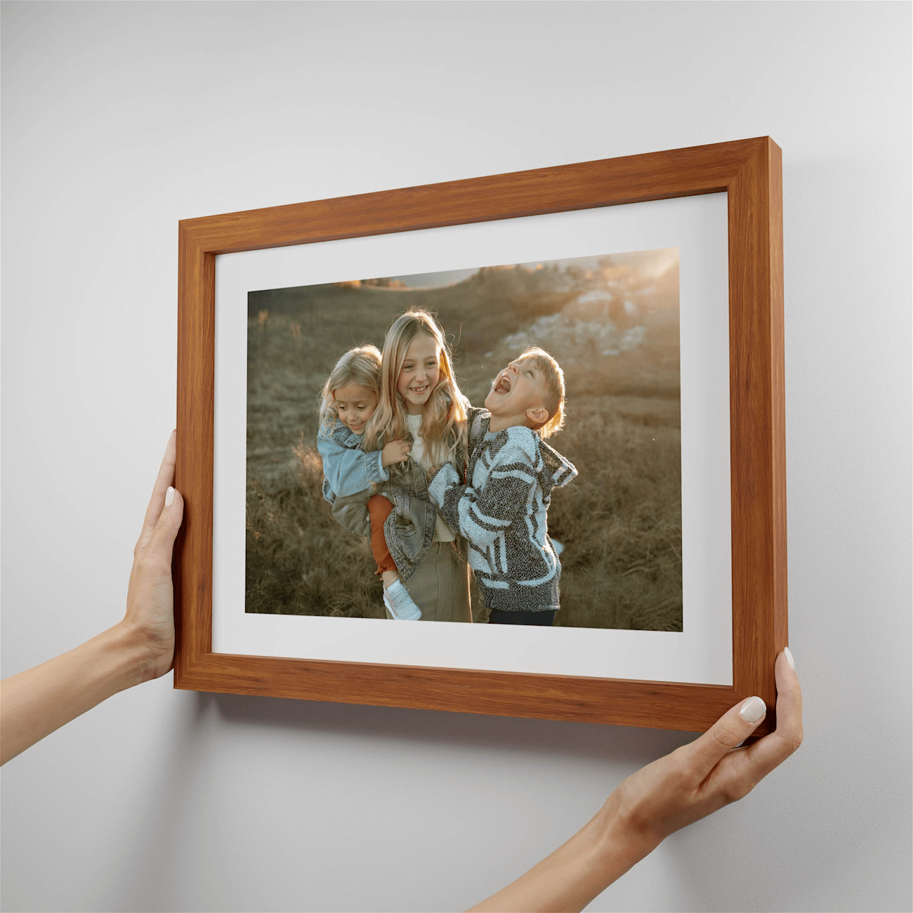 Printed framed pictures that stick to any wall, leave no damage, and can be moved around.