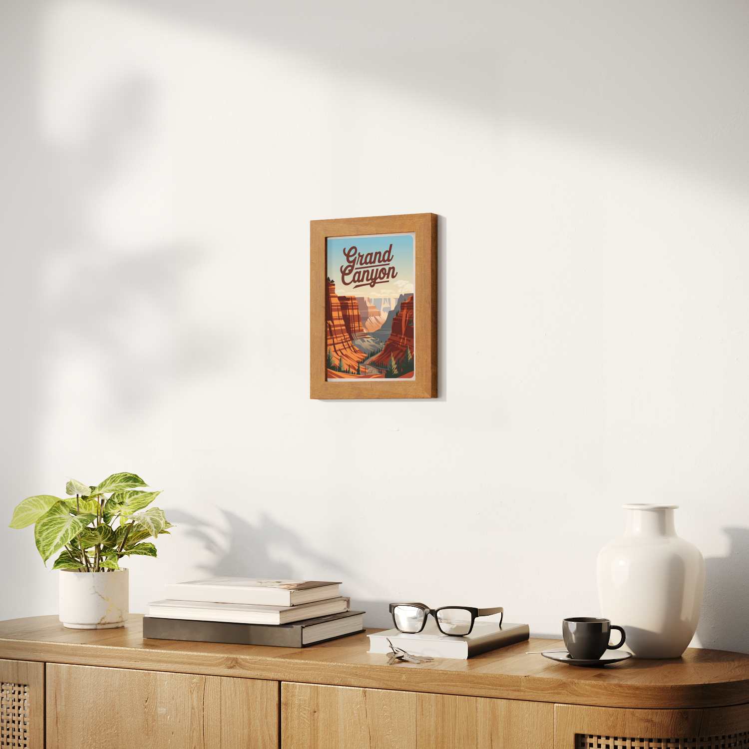 Sizes range from 8''x11'' to 22''x44''. Available in various materials and frame colors, including frameless and canvas options