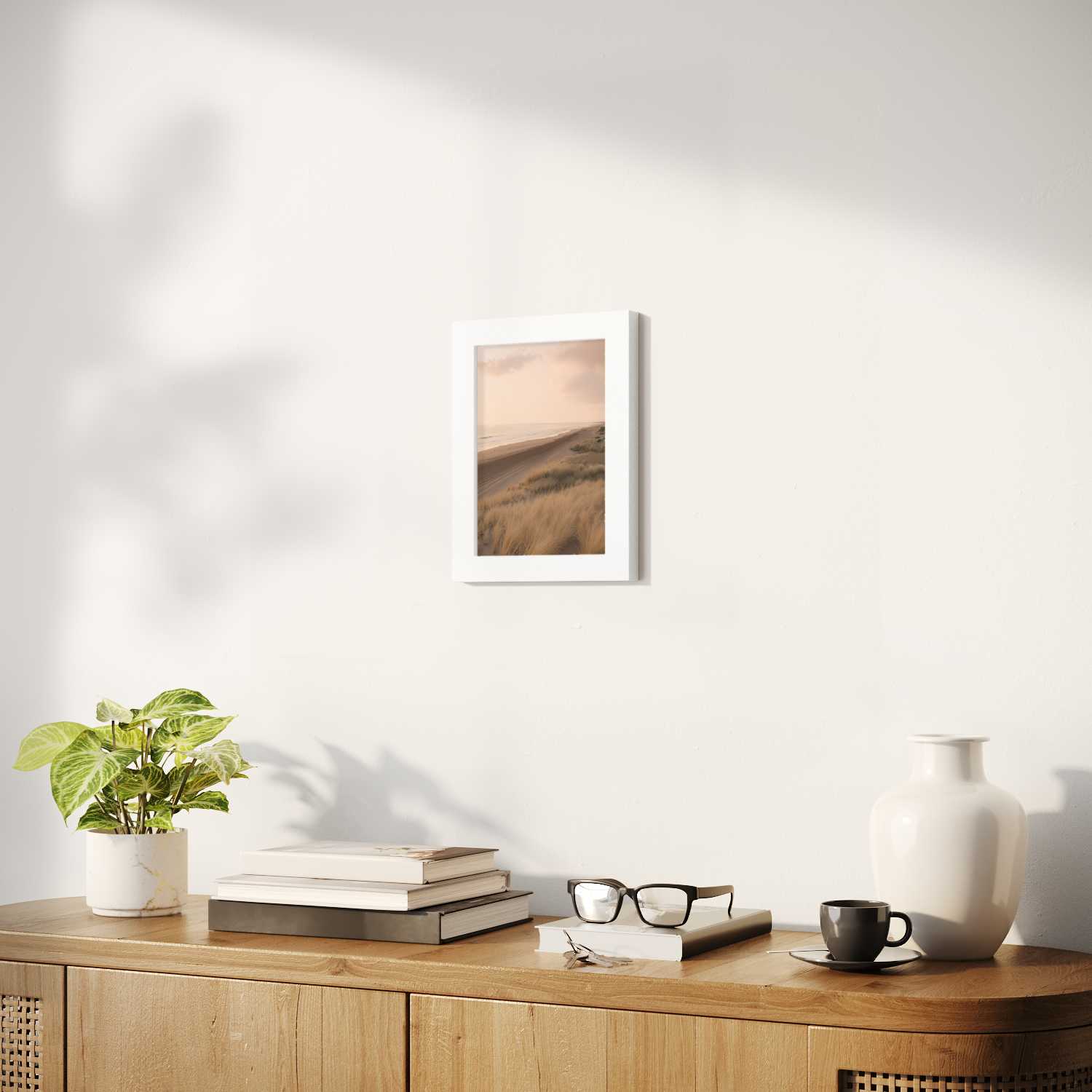 Sizes range from 8''x11'' to 22''x44''. Available in various materials and frame colors, including frameless and canvas options