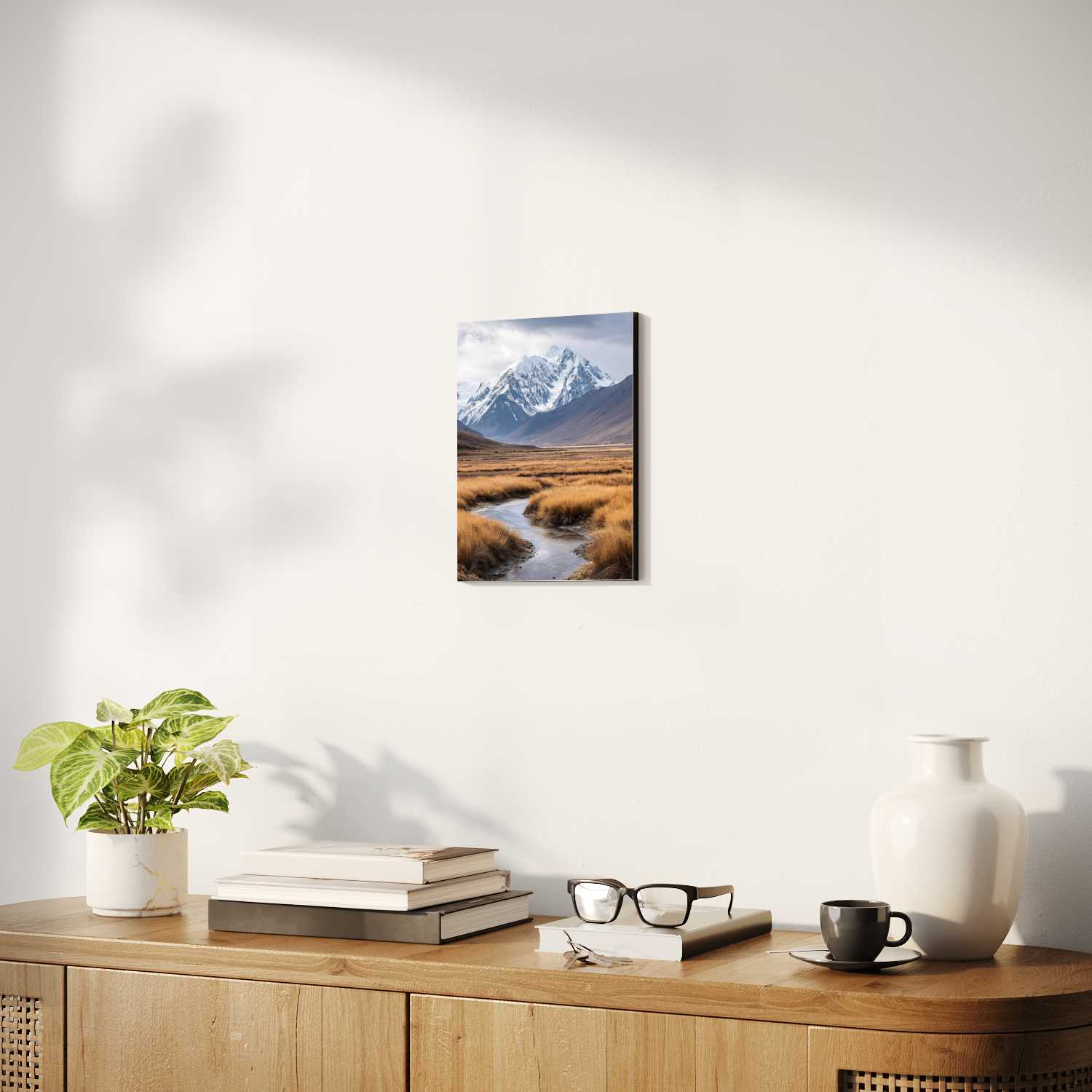 Sizes range from 8''x11'' to 22''x44''. Available in various materials and frame colors, including frameless and canvas options