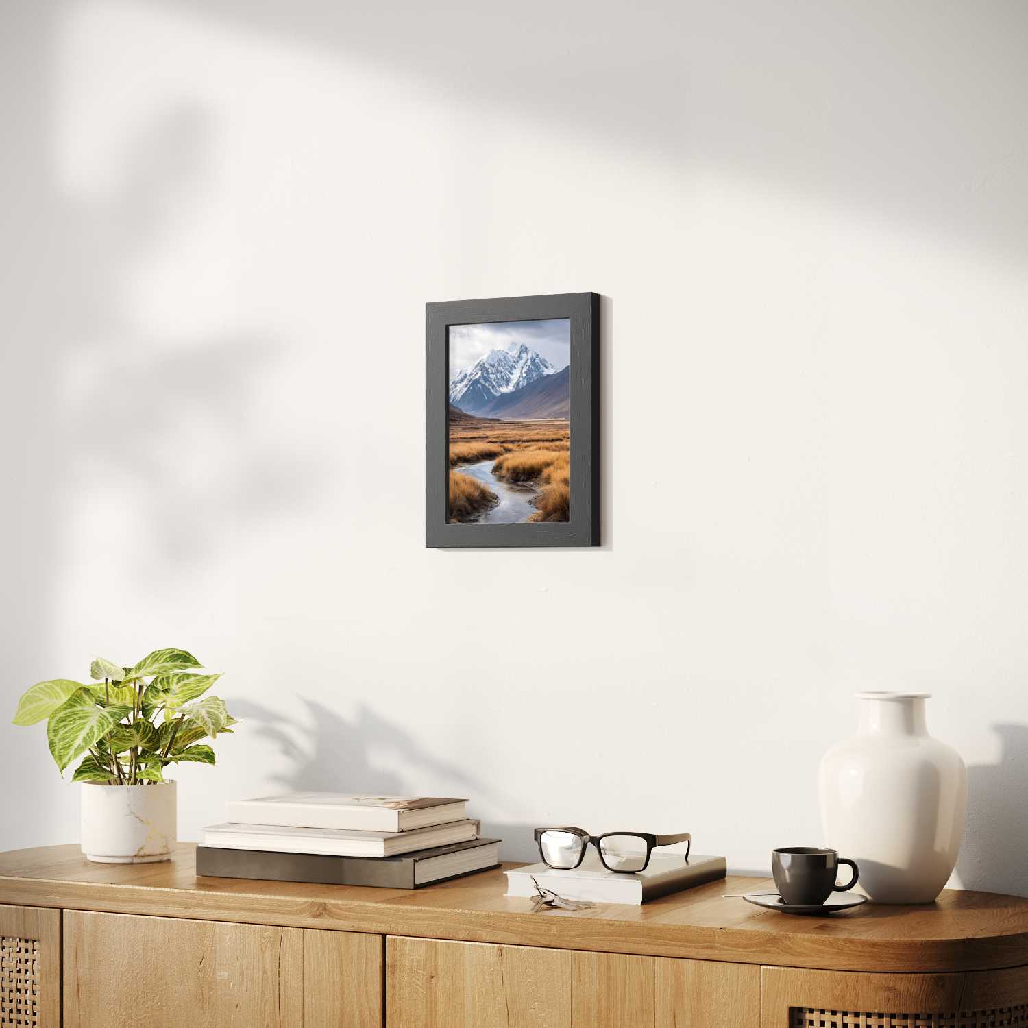 Sizes range from 8''x11'' to 22''x44''. Available in various materials and frame colors, including frameless and canvas options
