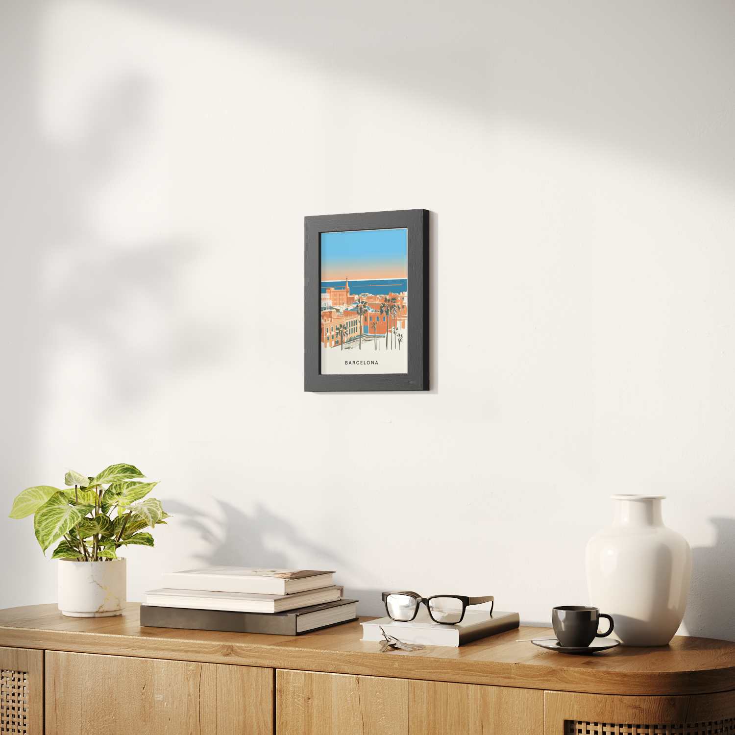 Sizes range from 8''x11'' to 22''x44''. Available in various materials and frame colors, including frameless and canvas options