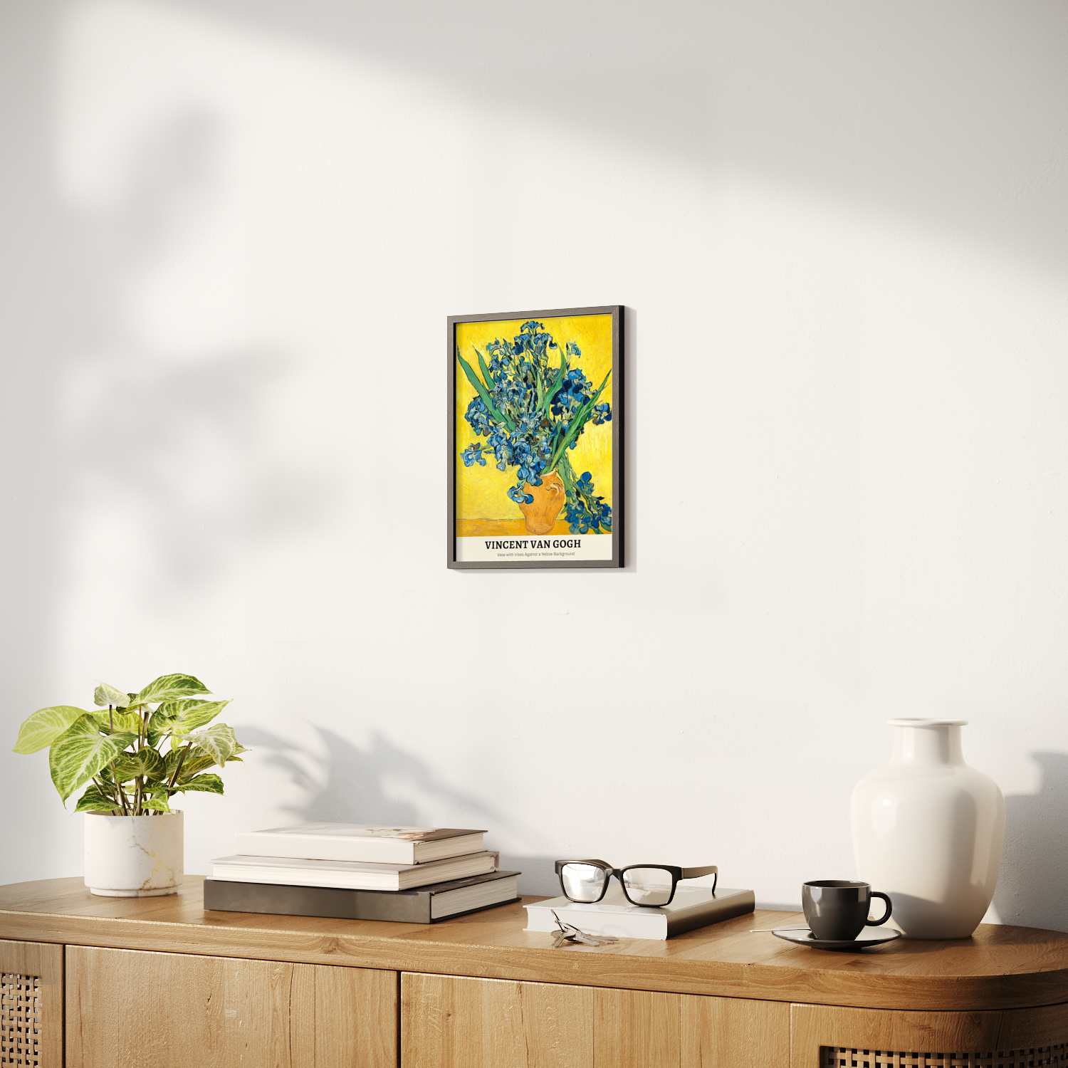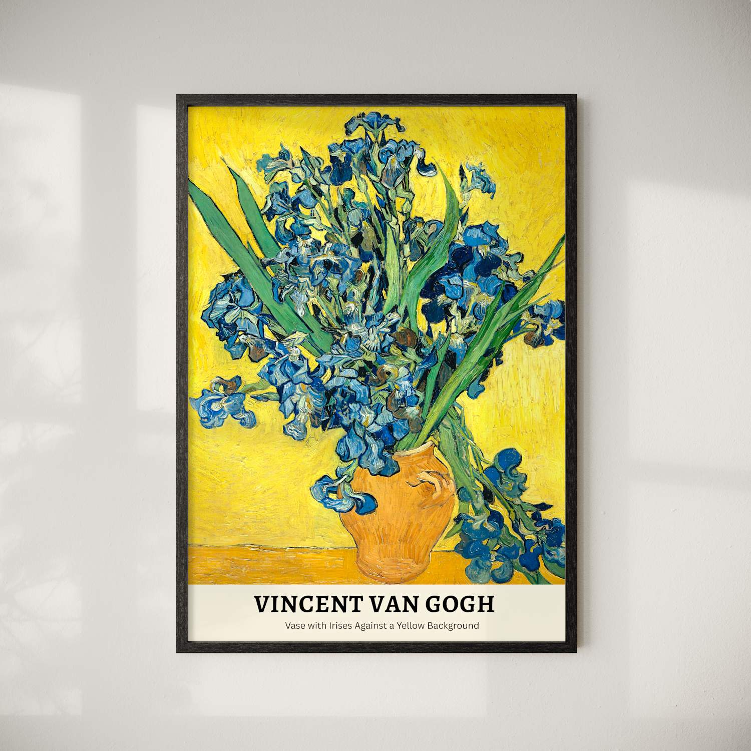 Vase with Irises Against a Yellow Background